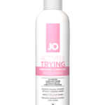 JO® ACTIVELY TRYING lubricant creates a healthy environment for sperm with its optimized PH levels that mimic the alkaline balance of semen and fertile cervical mucus. Water-based and silky smooth, it allows his and hers fluids to mix freely without interference from competing elements, not only encouraging sperm to complete their journey to conception, but also enhancing the overall experience with a natural sensual feel.